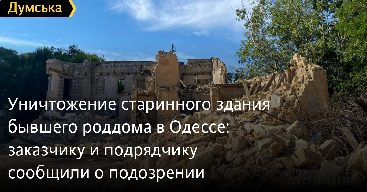 Фигурантам инкриминируют умышленное незаконное уничтожение, разрушение или повреждение объектов культурного наследия, совершенные должностным лицом с использованием служебного положения (ч. 5 ст. 298 Уголовного кодекса Украины), сообщили в полиции Одесской области.