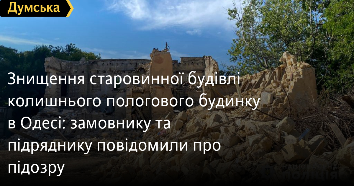 Фігурантам інкримінують умисне незаконне знищення, руйнування або пошкодження об'єктів культурної спадщини, вчинені службовою особою з використанням службового становища (ч. 5 ст. 298 Кримінального кодексу України), повідомили в поліції Одещини.