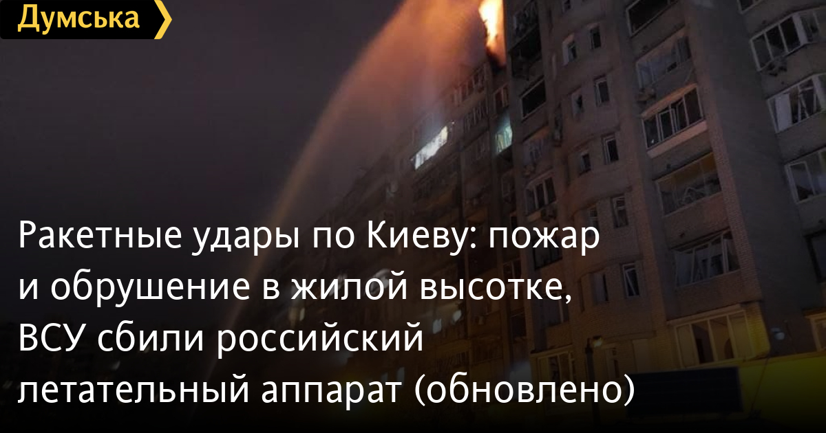 ОБНОВЛЕНО В 5:15. ГСЧС сообщает о масштабном пожаре и обрушении в жилой многоэтажке по улице Кошица в результате обстрела. На месте работают 11 пожарных машин.