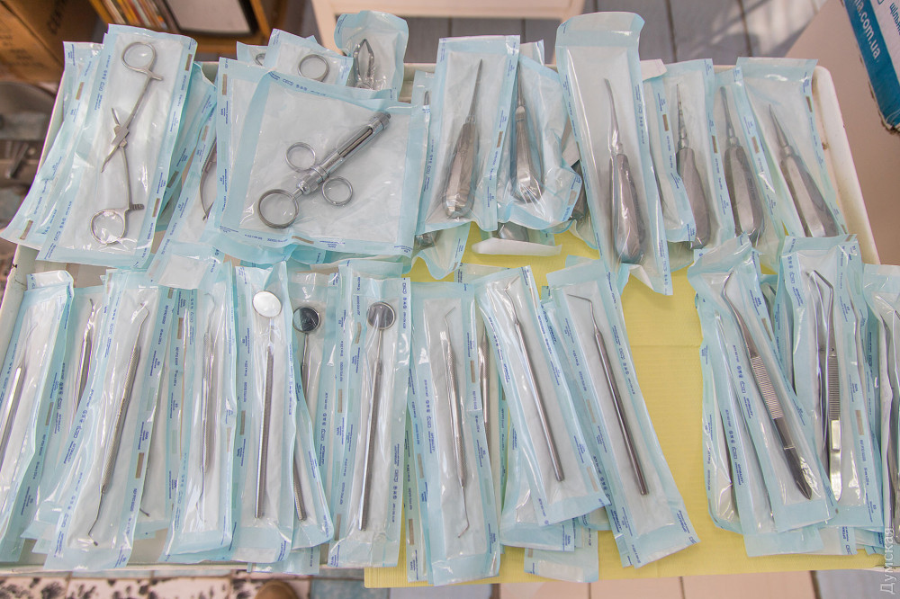 «Ми беремо все із собою, – роз'яснює Сергій. – Усі розхідники, інструменти, матеріали – це все за наш рахунок. Забираємо зі своїх клінік. На сьогоднішній день на все про все витратили близько 1,5 тисяч доларів. Частину коштів збирають члени громадської організації «Легіон», коли ми кидаємо клич. У нас тут є все, можемо навіть імплантати ставити, але про голлівудські посмішки не йдеться: вініри та відбілювання – після перемоги. Ми працюємо з «гострими» пацієнтами, які потребують негайного втручання. Розкришився зуб, випала пломба, занедбана хроніка, яка заважає людині. Люди з різних регіонів, з віддалених від обласних центрів сіл, тому дуже часто ротову порожнину міцно запущено. Буває зубів десять видалити треба. Був день, коли у нас за дві години роботи закінчилося 30 елеваторів (інструментів для видалення зубів, – Ред.)».