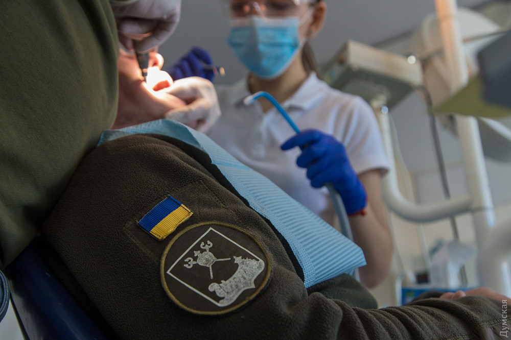 Під кабінетом уже зібралася черга із бійців Нацгвардії. Багато хто прийшов до стоматолога вперше за кілька років служби, є запущені випадки.