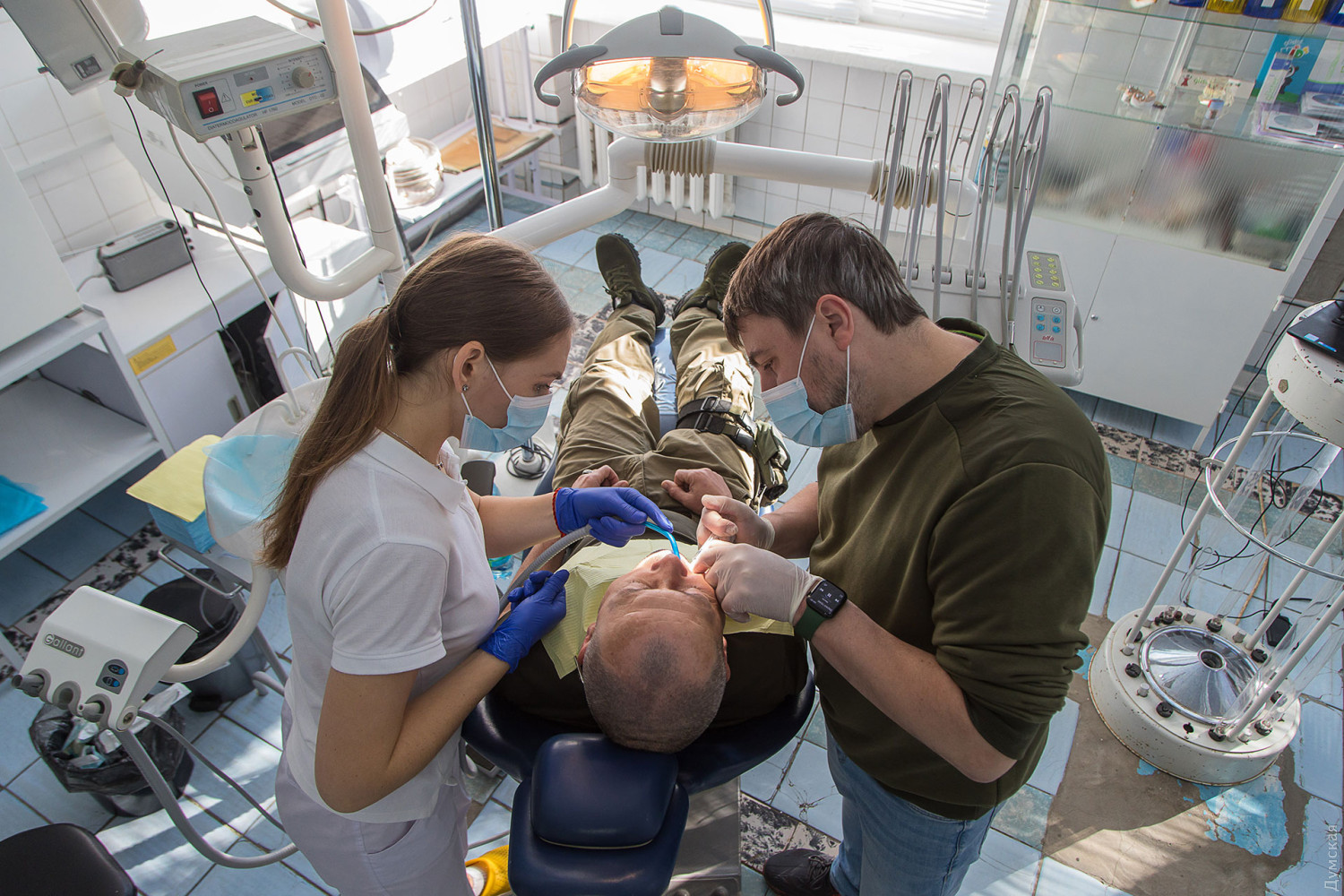 «Ми спілкуємося і з бойовими медиками, і з самими бійцями, — каже Сергій. — Бачимо, що проблема дуже серйозна. Це і харчування, і умови побуту, і постійний стрес. У військкоматах на зуби ніхто не дивиться, а в окопах немає часу про них думати. Зараз наближаються холоди, і всі запальні процеси загострюватимуться. Про який нормальний стан бійця може бути мова, якщо гній, набряк, біль та всі інші задоволення? Теоретично десь є якийсь стоматолог у шпиталі, теоретично можна туди потрапити, але на практиці – нереально».