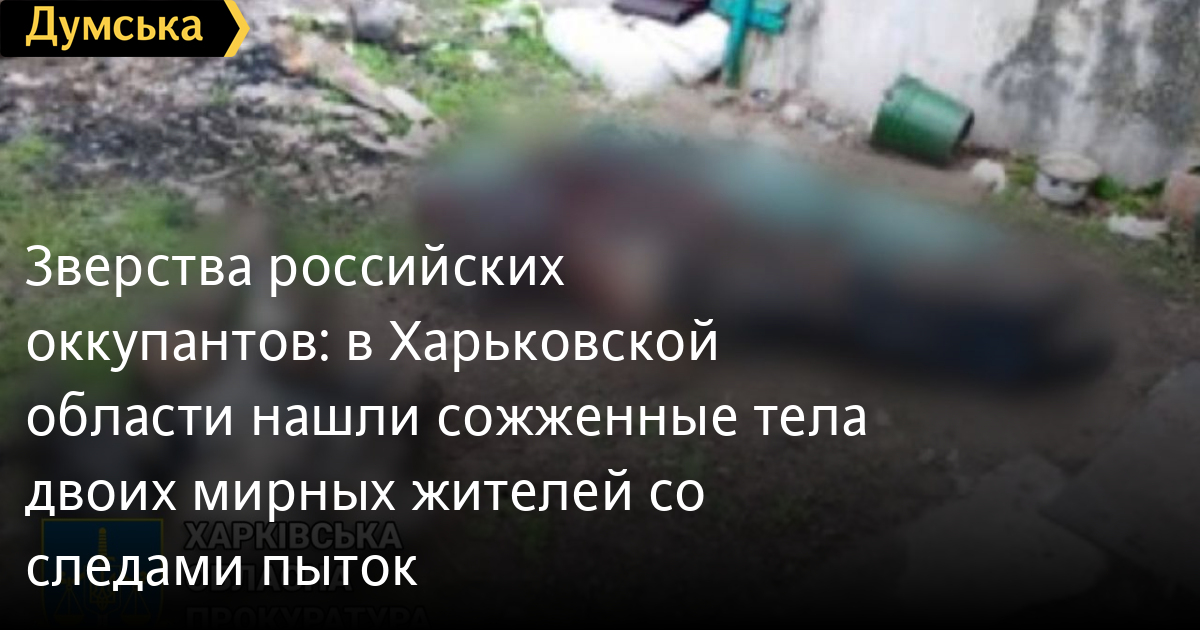 «22 апреля 2022 года после освобождения села Гусаровка Изюмского района от российских захватчиков в подвальном помещении одного из домов найдены трупы двух человек — мужчины и женщины. Установлено, что во время оккупации российские военнослужащие пытали мужчину и женщину. После этого оккупанты сожгли их тела», – говорится в сообщении.