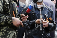2. Сторонник федерализации Украины Александр Посьмиченко (слева) в районе Греческой площади за три часа до пожара в Доме профсоюзов.