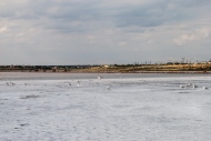 Из зарослей камыша в Куяльник впадают мелкие пресноводные ручьи