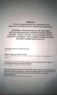 Щойно була зареєстрована наша нова Первинна Профспілкова організація Всеукраїнської незалежної профспілки «Захист праці» у Васильківському відділі Головного управління національної поліції в Київської області. Ідентифікаційний код юридичної особи — 40319892. Дуже символічно в ці березневі святкові дні бачити, що саме сміливі жінки-поліцейські України розпочинають нову та відповідальну справу — побудову незалежних профспілок «Захисту праці» в органах новітньої української поліції. Очолює нашу нову первинку з 18.02.2016 року — капітан поліції ЛОСЄВА АННА АНАТОЛІЇВНА. Успіхів вам, шановні працівники поліції! Зараз ви під нашим надійним профспілковим захистом. А ми під вашим! :)