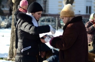8-9 января все желающие и неравнодушные люди могли принести в воскресную школу Свято-Ильинского Одесского мужского монастыря небольшой набор, состоящий из теплых носков, вафель, мандарин и конфет. Таким образом, православная молодежь города решила подарить праздник самой незащищенной категории людей – бездомным.