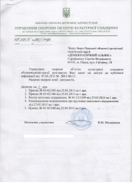 По нашему требованию, во исполнение писем заместителя министра Министерства культуры Украины, были выписаны Предписания об остановке работ на строительных объектах Управлением охраны культурного наследия Одесской областной государственной администрации.